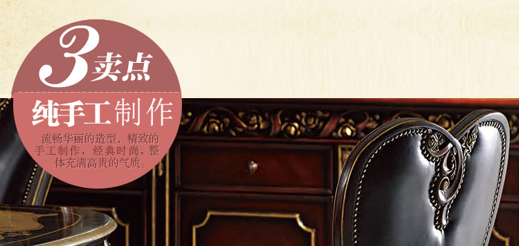 家具十分推崇优雅、高贵和浪漫,它是一种基于对理想情景的考虑,追求建筑的诗意、诗境,力求在气质上给人深度的感染。艺术风格最集中体现在家具的设计方面,要特征在于布局上突出轴线的对称,恢宏的气势,高贵典雅。细节处理上注重雕花、线条,制作工艺精细考究。