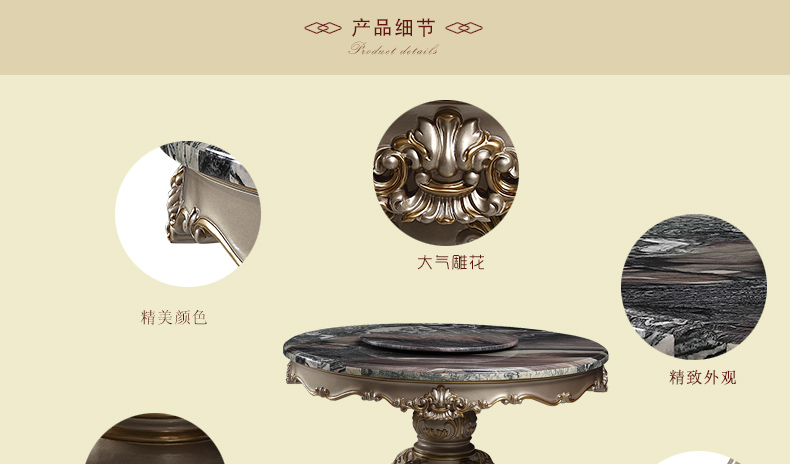 法拉卡丹 欧式风格大理石全实木餐桌 欧式酒店餐桌新款餐桌 A06-8