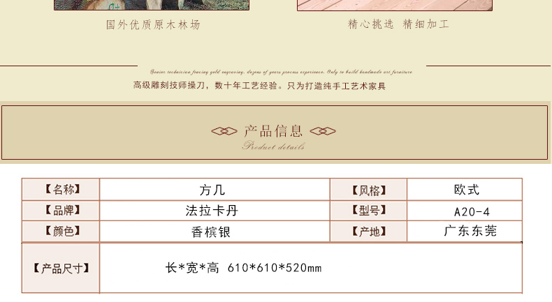 法拉卡丹 欧式新款方几茶几高档客厅居家茶几方几 A20-4