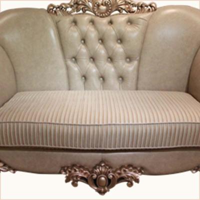 茵特拉菲 时尚奢侈精美设计淡雅色彩玫瑰金皮布艺结合双人沙发T621-2