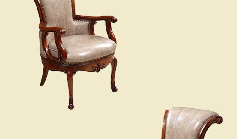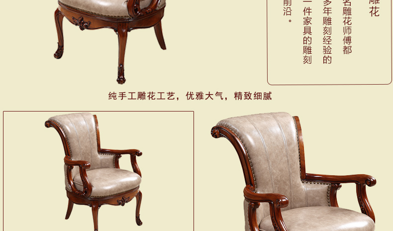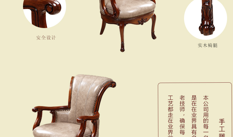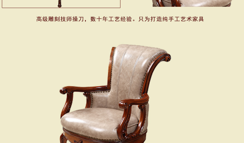 法拉卡丹 欧式书椅实木真皮书椅古典奢华书椅洽谈椅 698