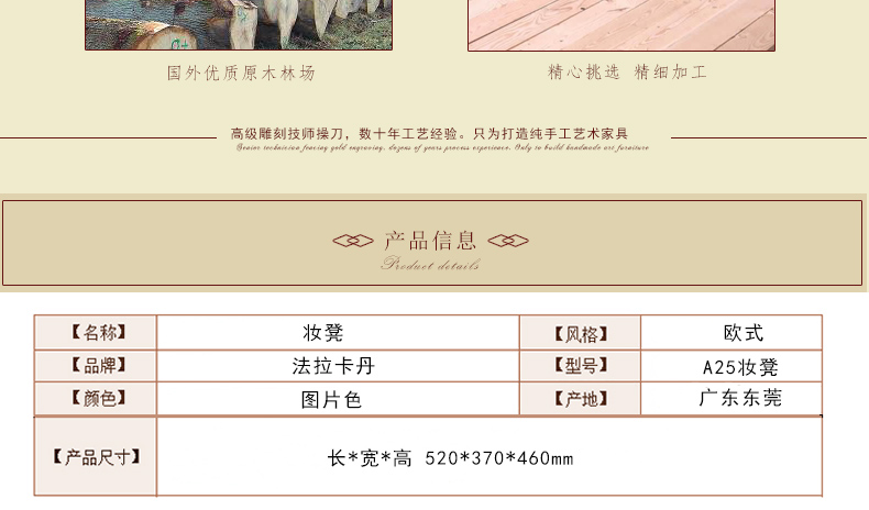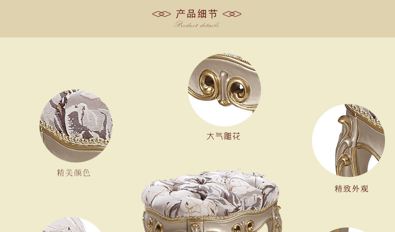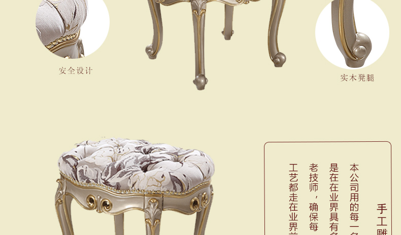 法拉卡丹 欧式实木妆凳 高档奢华雕花 布艺化妆凳子 A25