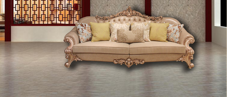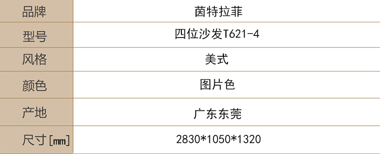茵特拉菲 时尚奢侈精美设计淡雅色彩玫瑰金皮布艺结合四人沙发T621-4
