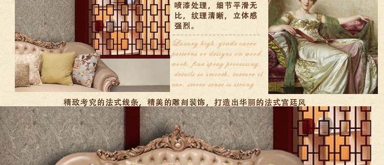 皮质质感不错,雕花做工挺好。整体感觉很高档。房间也准备配置这类型的家具。买就买自己喜欢的
