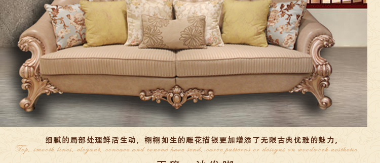 沙发线条流畅简洁,厚实饱满,温暖色调的自然美,极具艺术美感,强烈的贵族风情。让人感觉舒适,享受奢华。简约坚固 外观细腻淡雅,自然简洁,形尚简约。