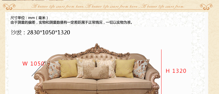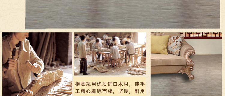 沙发皮质手感很好,颜色款式搭配不错,框架的木质雕花处理精致,坐上去软硬合适,跟我家装很棒。