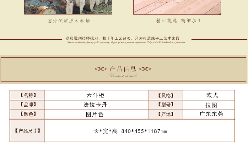 法拉卡丹 欧式高档六斗柜欧式雕花六斗柜时尚六斗柜 型号:拉图