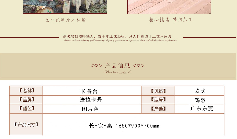 法拉卡丹 欧式高档长餐桌 全实木长方形饭桌 型号:玛歌