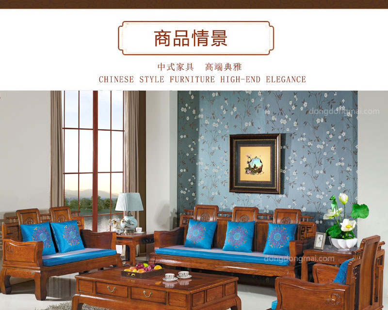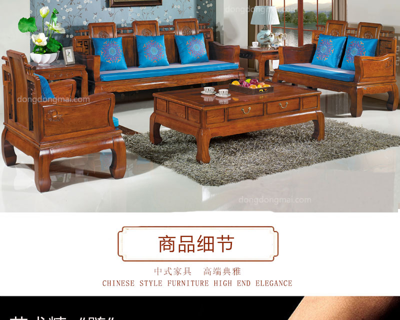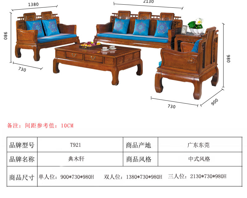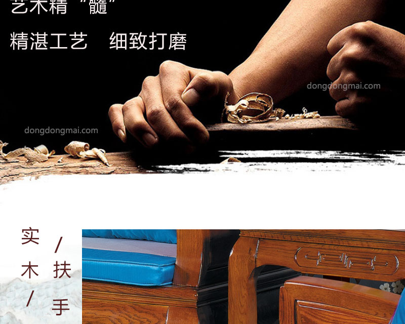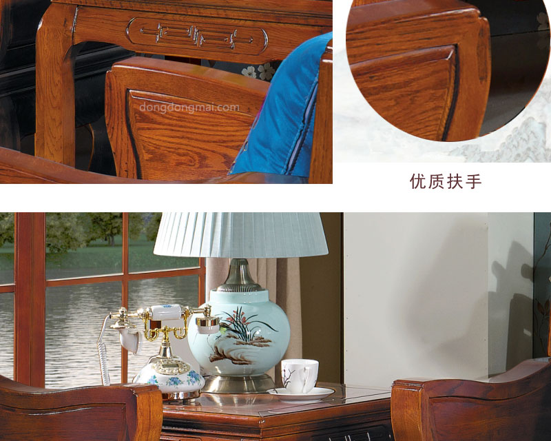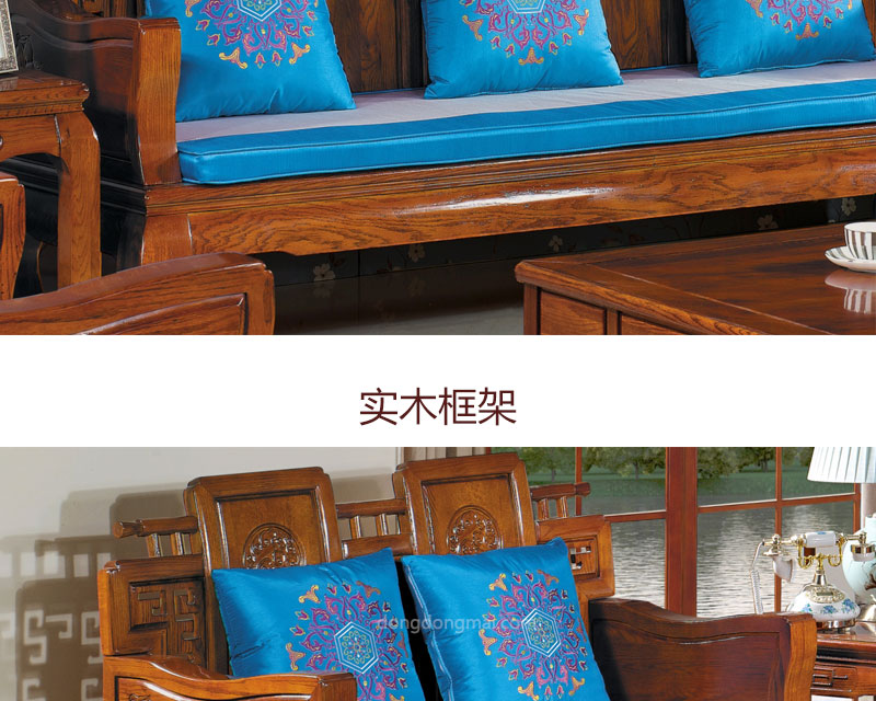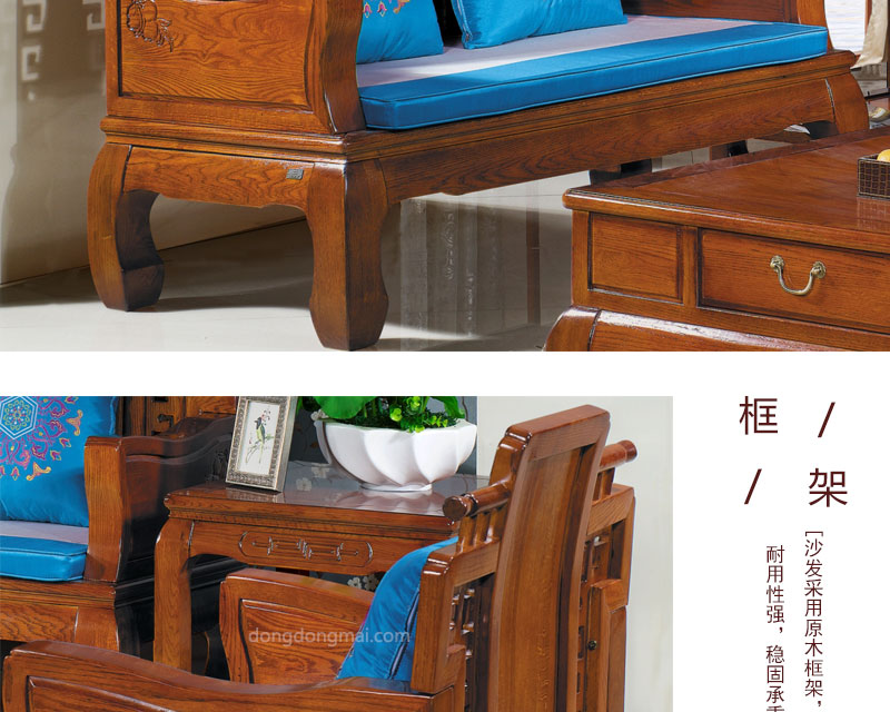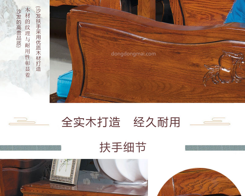【典木轩】中式风格 典藏橡木 纯手工精美雕饰 中国风布艺搭配 实木沙发(1+2+3)型号:T921