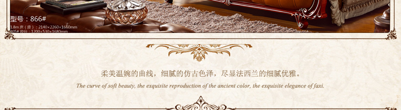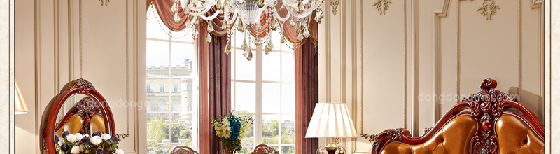 古典法式家具带有浓郁的贵族气息,这类风格的家具,主要采用花样繁多的装饰,作大面积的手工雕刻、金箔贴面、描金涂漆处理,坐卧类家具大量应用面料包覆,华丽的布面与精致的雕刻互相配合。新古典的线条更为明快,主要以嵌花贴皮呈现质感。