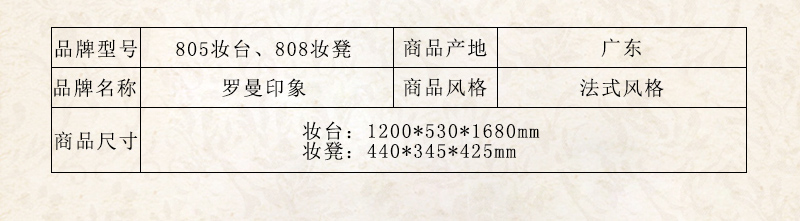【罗曼印象】法式新古典 高档实木 唯美精致 卧室储物梳妆台 型号:805