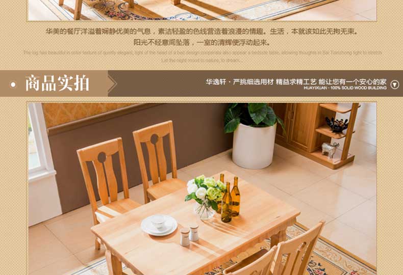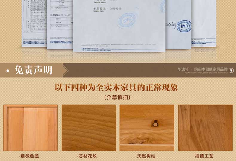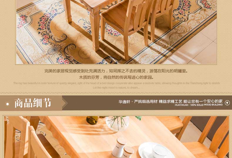 选用材料100%绿色环保,健康无忧环保零甲醛,产品均通过国家质检认证。全进口实木,厚重结实,不贴皮。朴实简洁不华丽,没有繁多琐碎的花式设计,满屋温和的原木色家居,打造一个时尚完美的家。