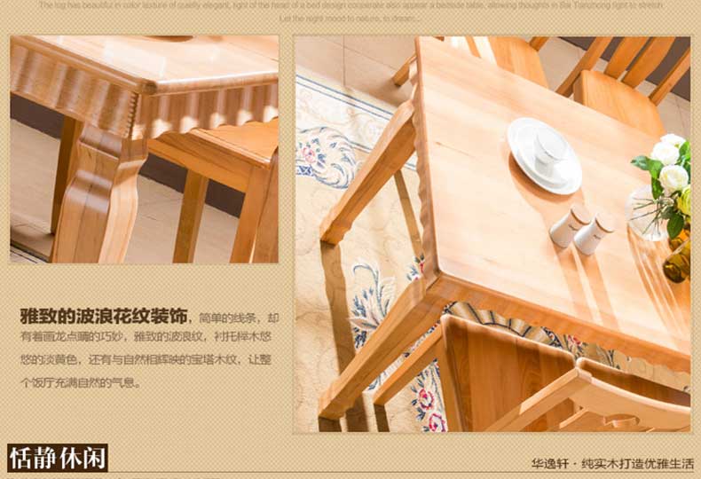 华逸轩进口榉木全实木餐桌椅组合餐台饭桌小户型餐厅家具中式方桌CT203波浪餐桌