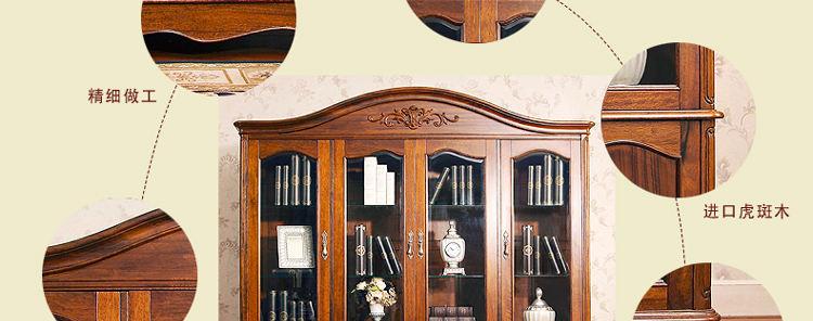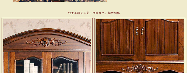 书柜还是很不错的,店家人也很好,东西直接给送到家里超有爱,并且负责装起来,柜子是深色风格,看上去挺不错的,雕花也很细腻