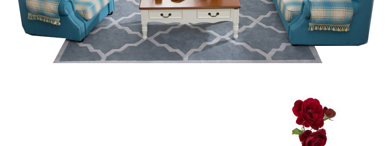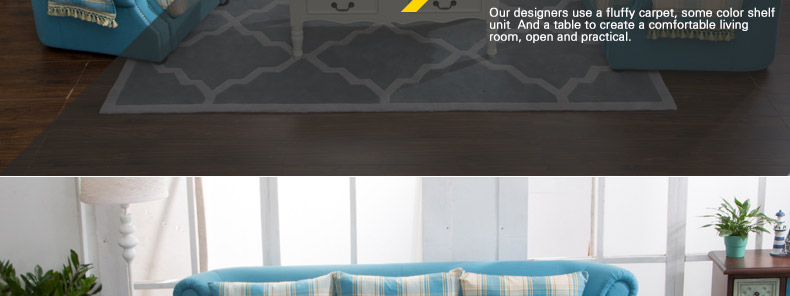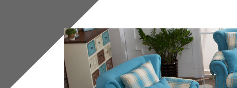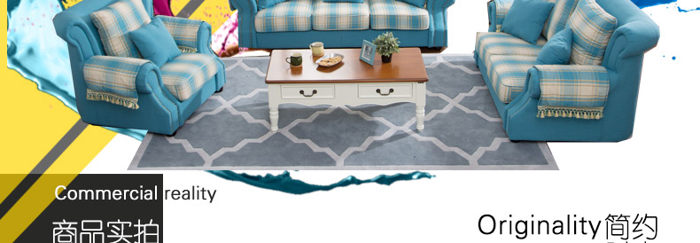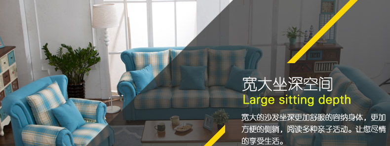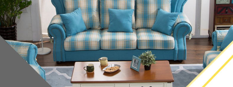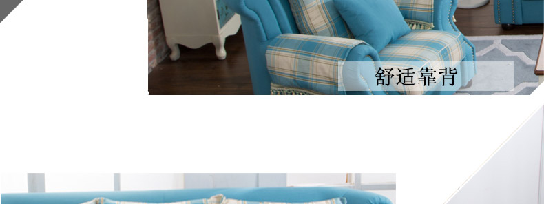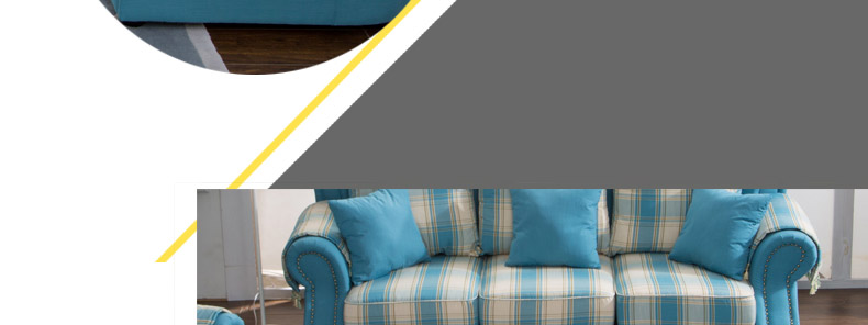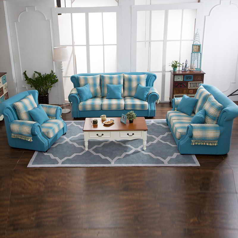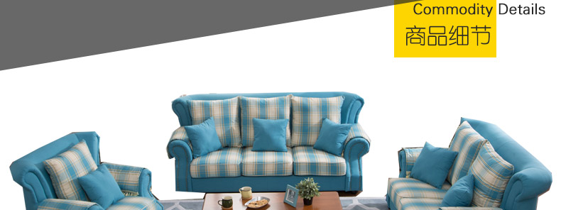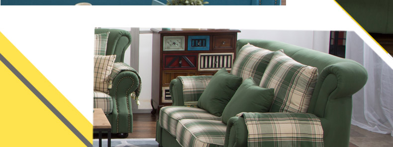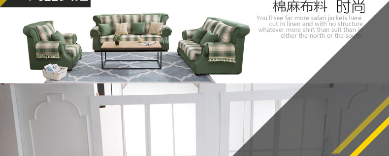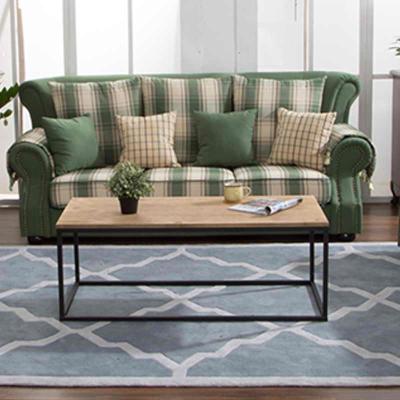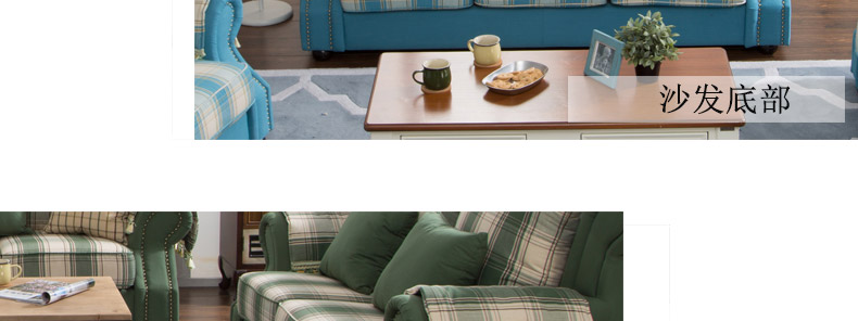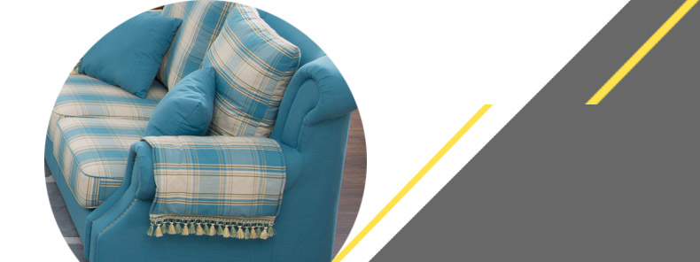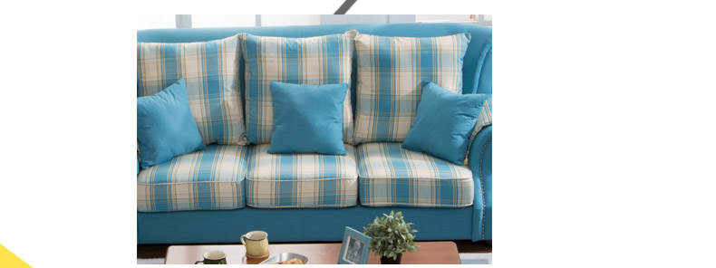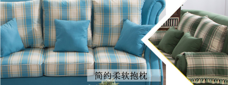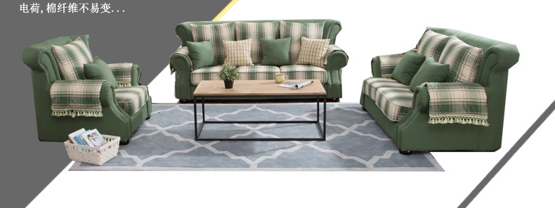 法依兰 上等高档布料蓝绿格子棉麻布高密度海绵实木框架沙发6001