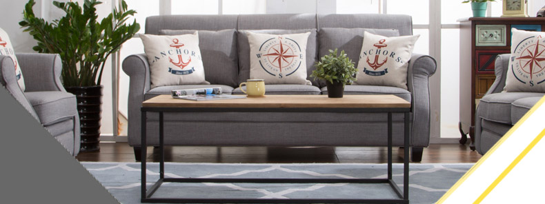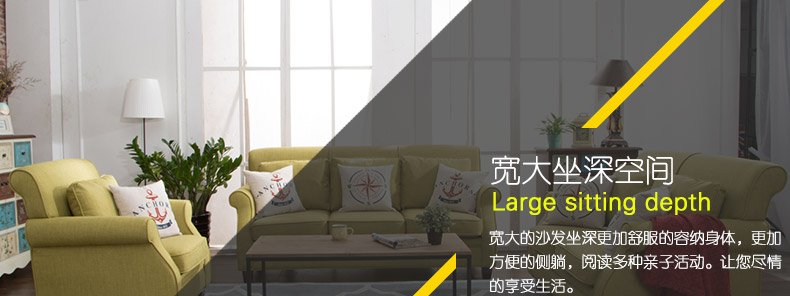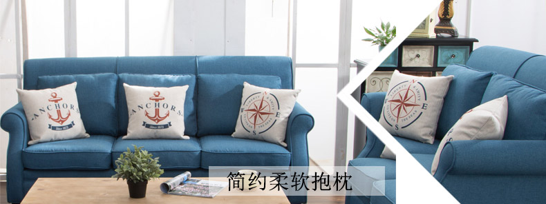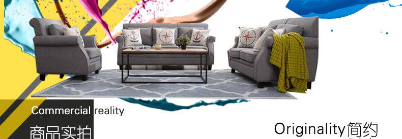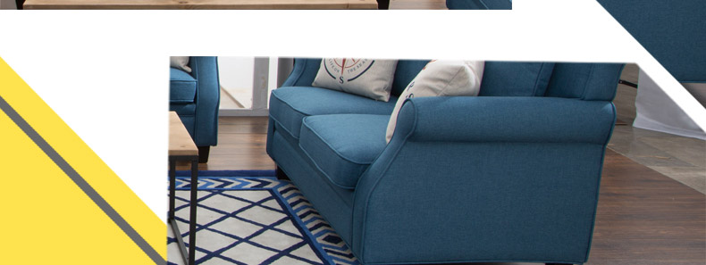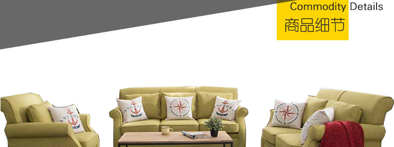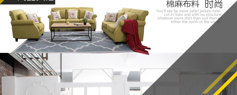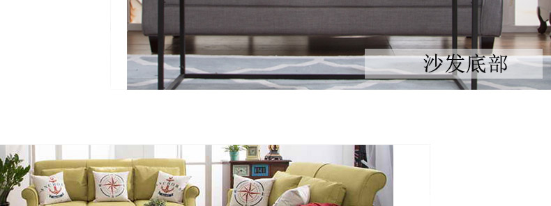 法依兰 美式乡村黄色灰色蓝色咖色上等棉麻布料实木框架组合沙发6006