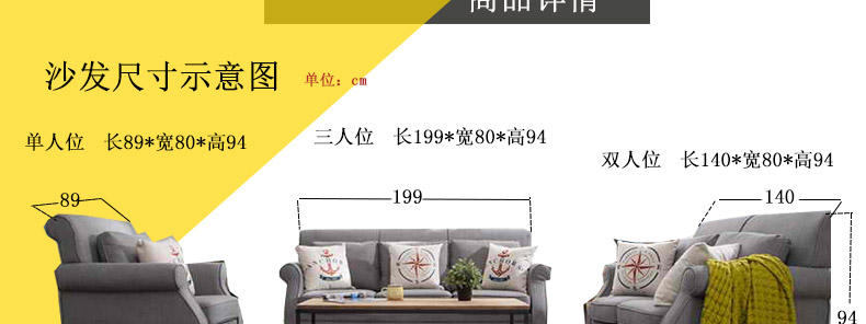 尺寸(cm)单位:长89*宽80*高94 双位:长44*宽80*高94 三位:长199*宽80*高94