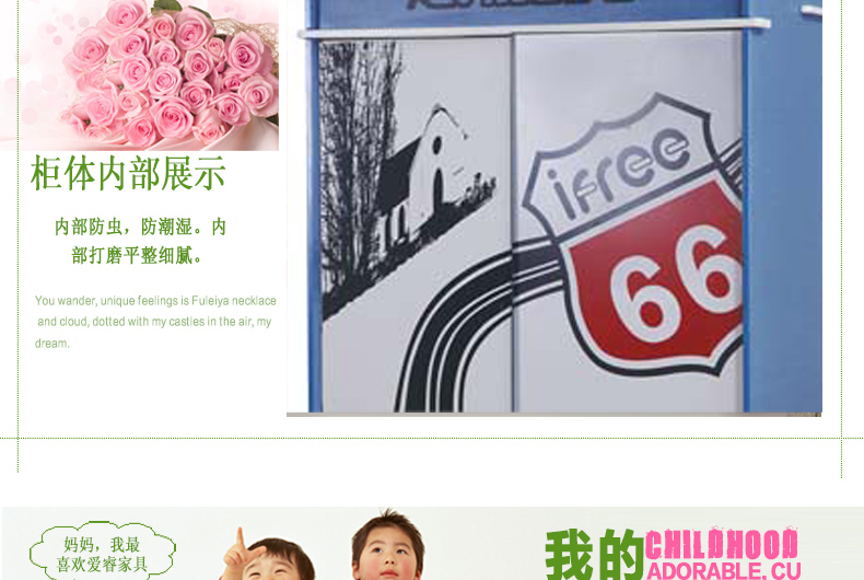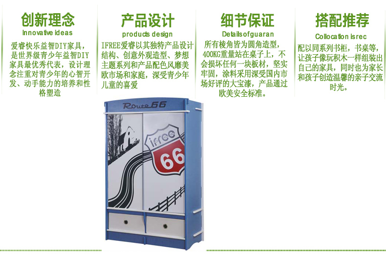 爱睿梦想系-66号公路系列 衣柜 快乐益智手工DIY 儿童青少年家具66HYG-05L