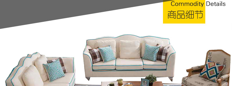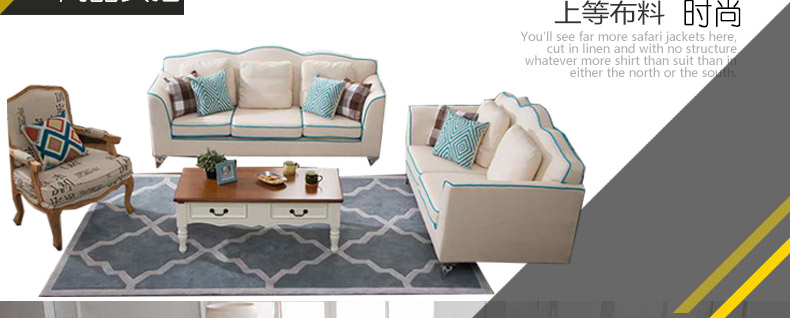 法依兰 美式乡村上等布料高密度海绵时尚舒适组合沙发6003