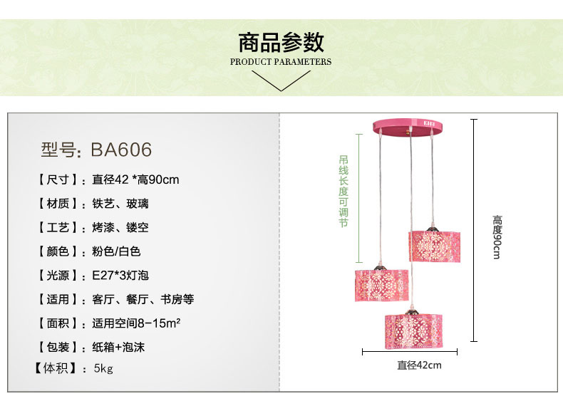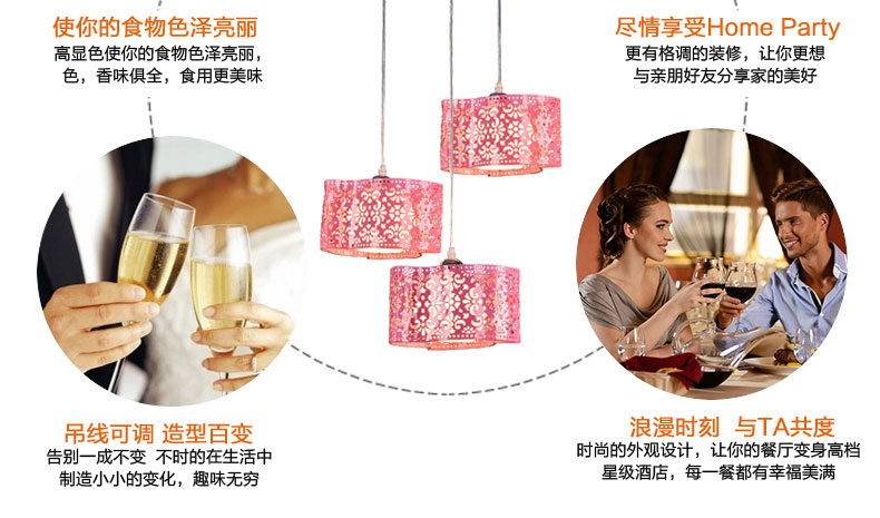 现代创意餐吊灯三头吊灯温馨吊线灯铁艺雕花吧台饭厅BA606