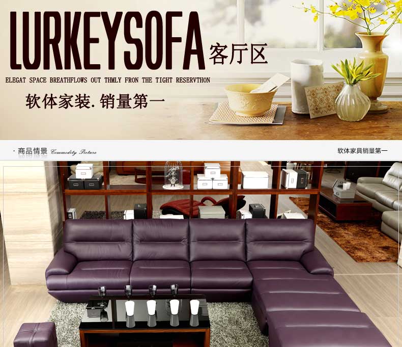 乐其新款真皮沙发组合客厅家具高档现代皮艺沙发LK382