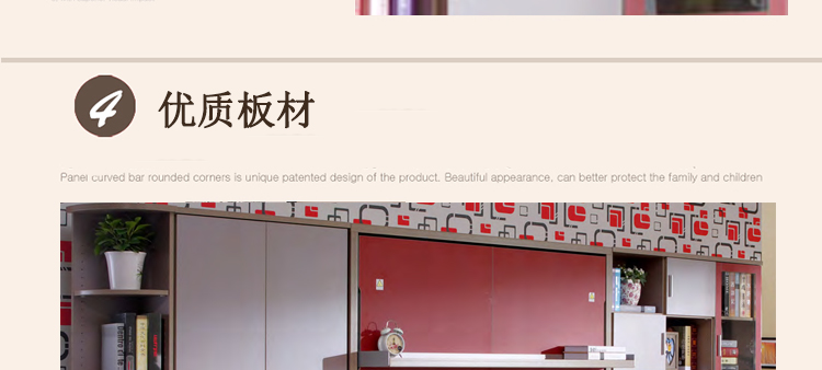 尺寸材质:柜体+门板+书桌+书架  结构:床板床