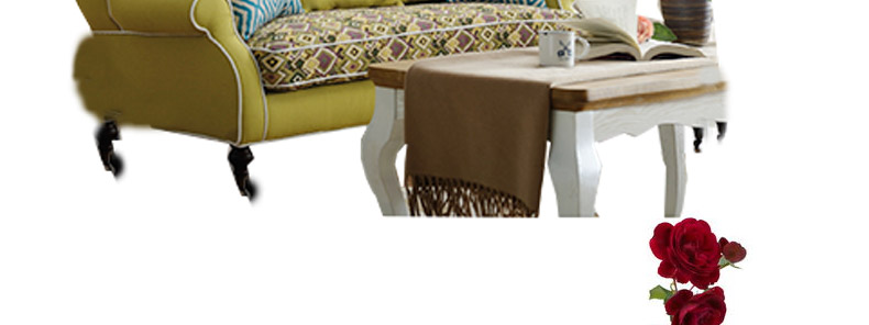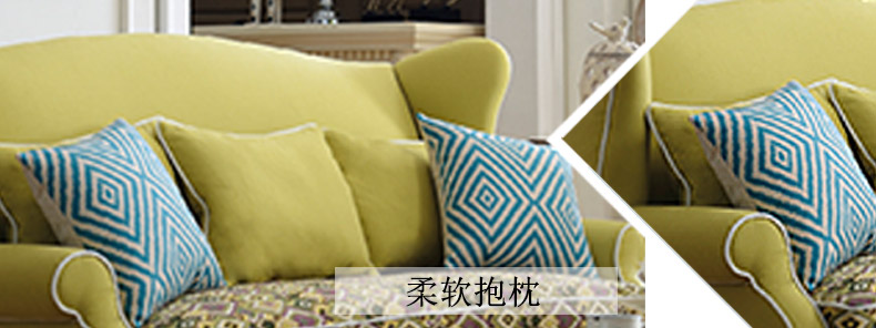 法依兰 美式乡村红木底架进口绣花棉麻布高密度海绵实木框架组合沙发3024
