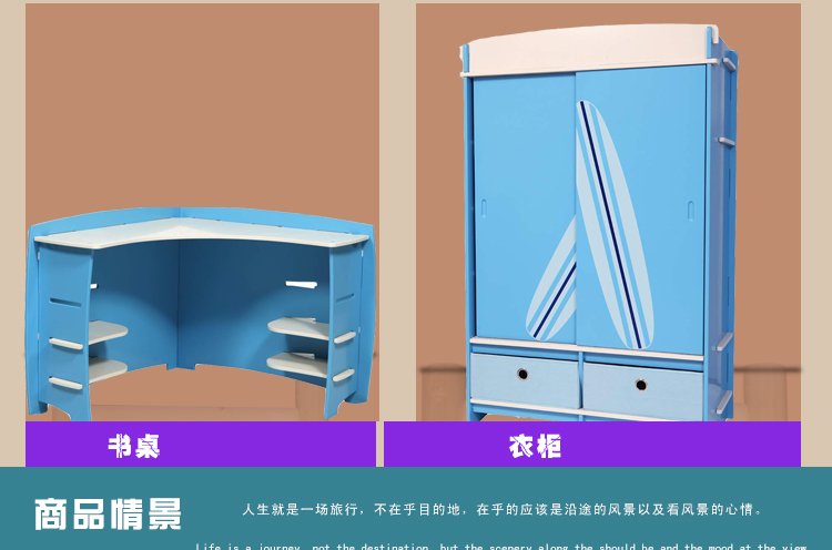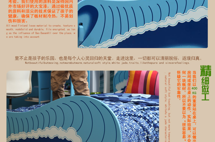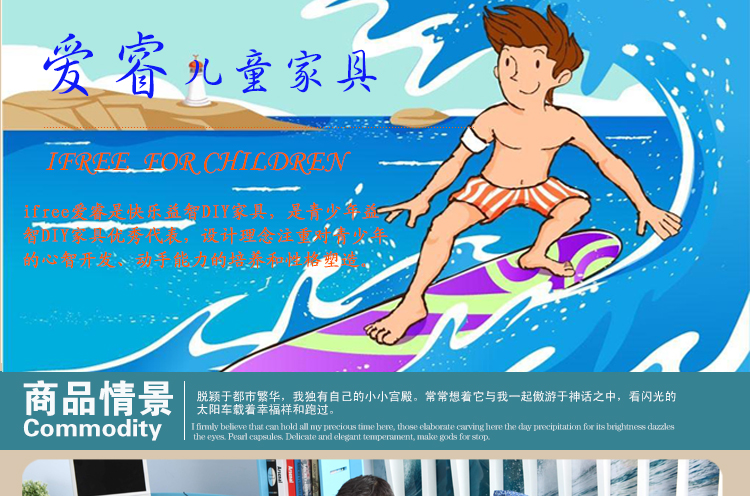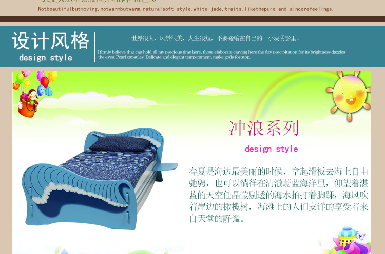 爱睿DIY青少年儿童家具 海洋冲浪系列儿童床 1.2米 床SUC-0112
