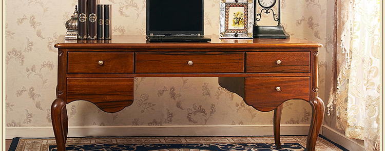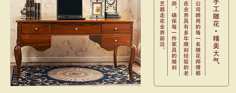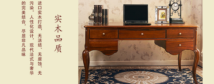 法拉卡丹欧式复古环保 纯实木书桌 电脑桌书房家具 带抽屉写字台A01-25