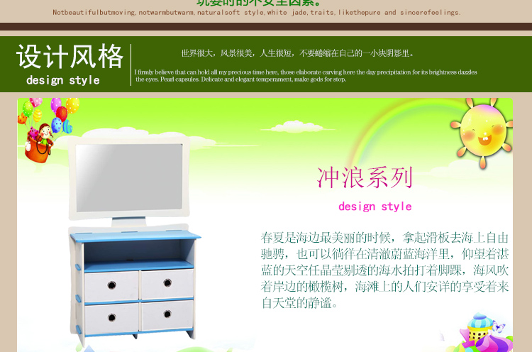爱睿 冲浪系列 儿童青少年DIY 妆台 妆镜 SUSZ-06A