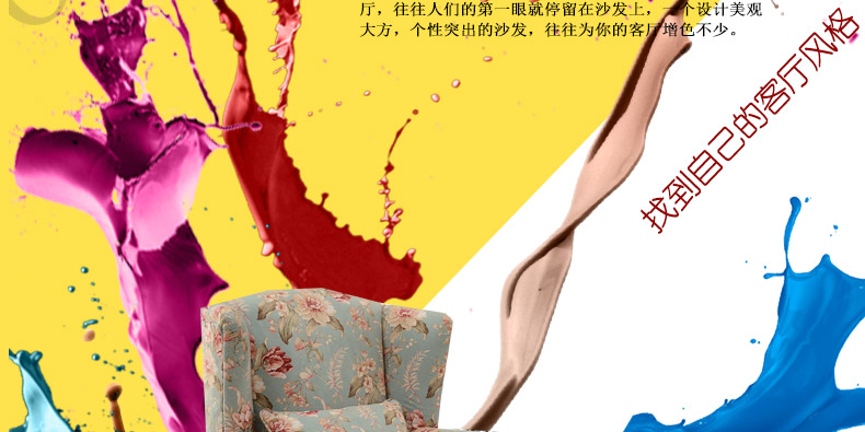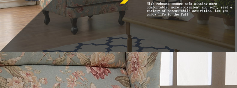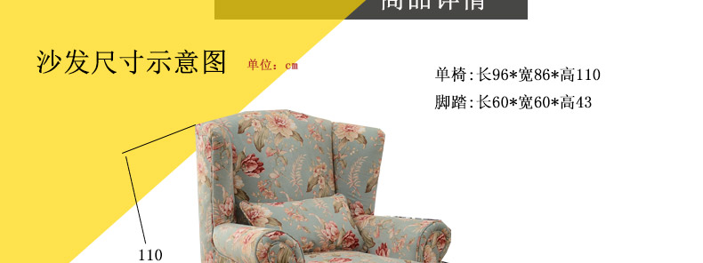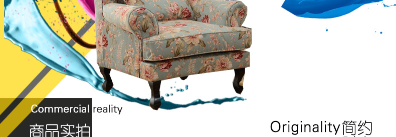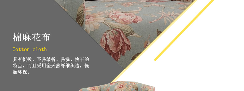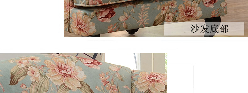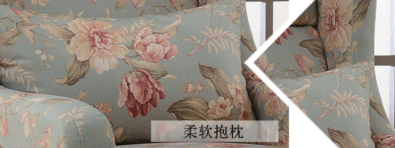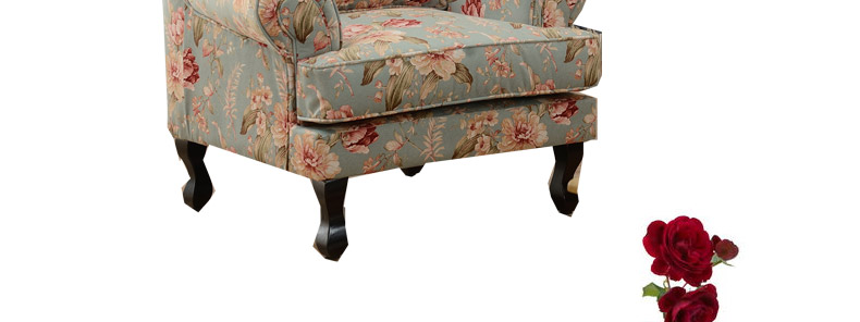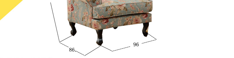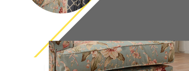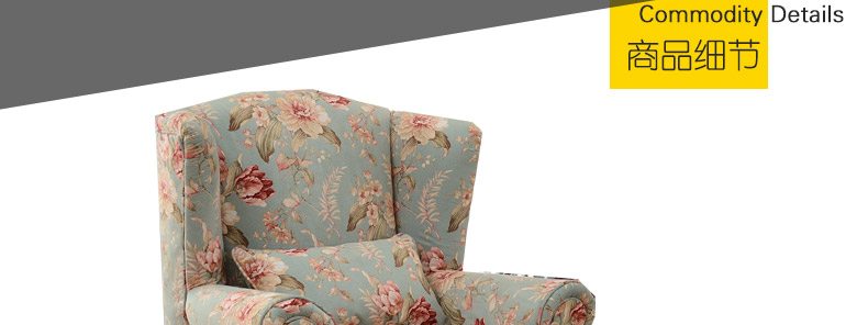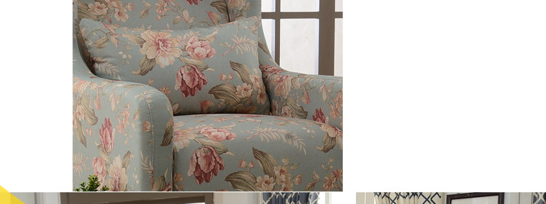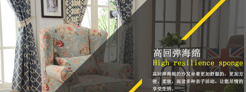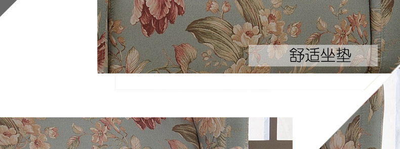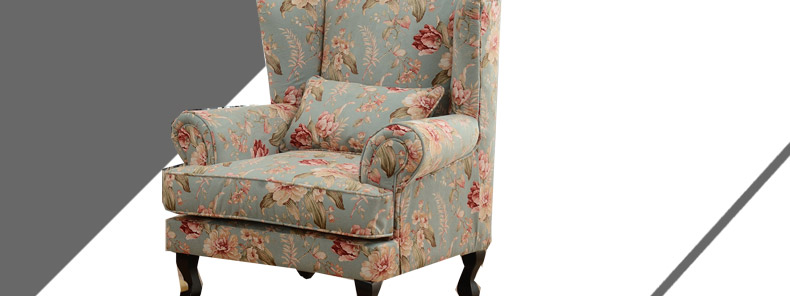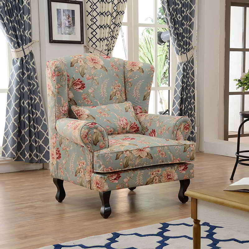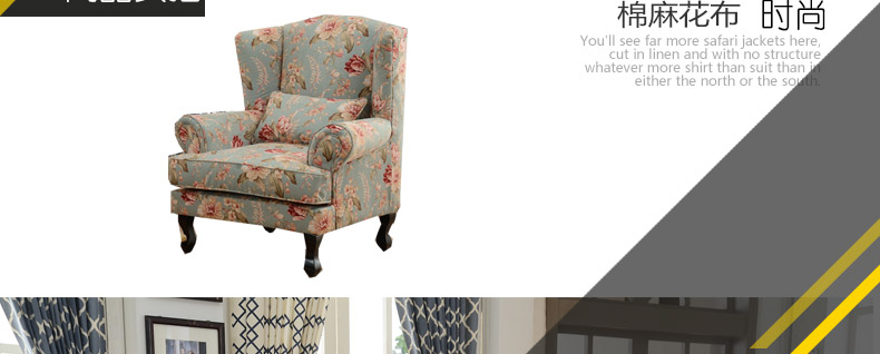 法依兰 美式乡村棉麻花布高回弹海绵实木框架单椅沙发ms003