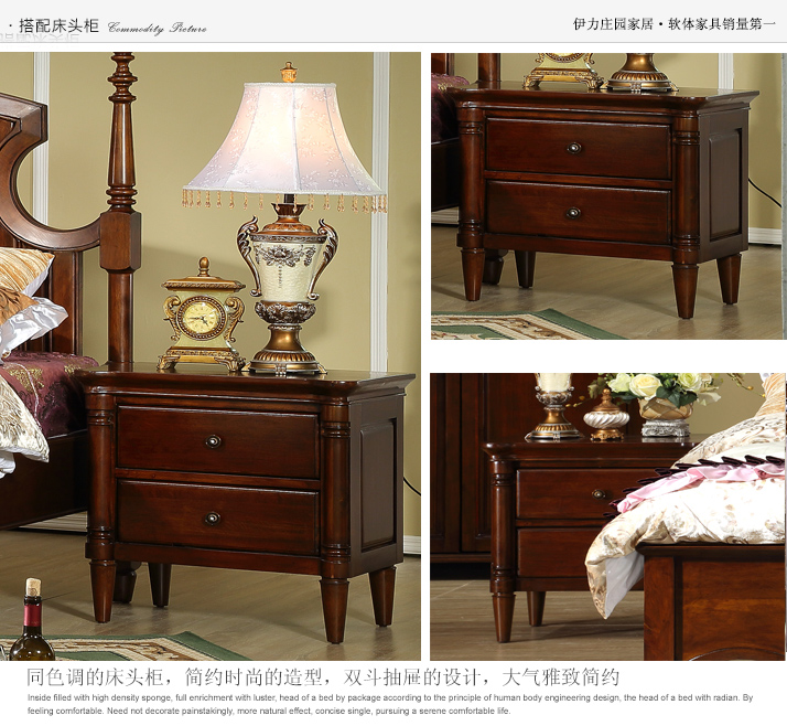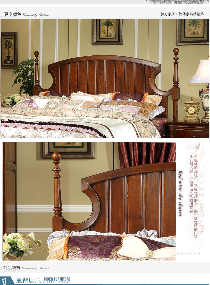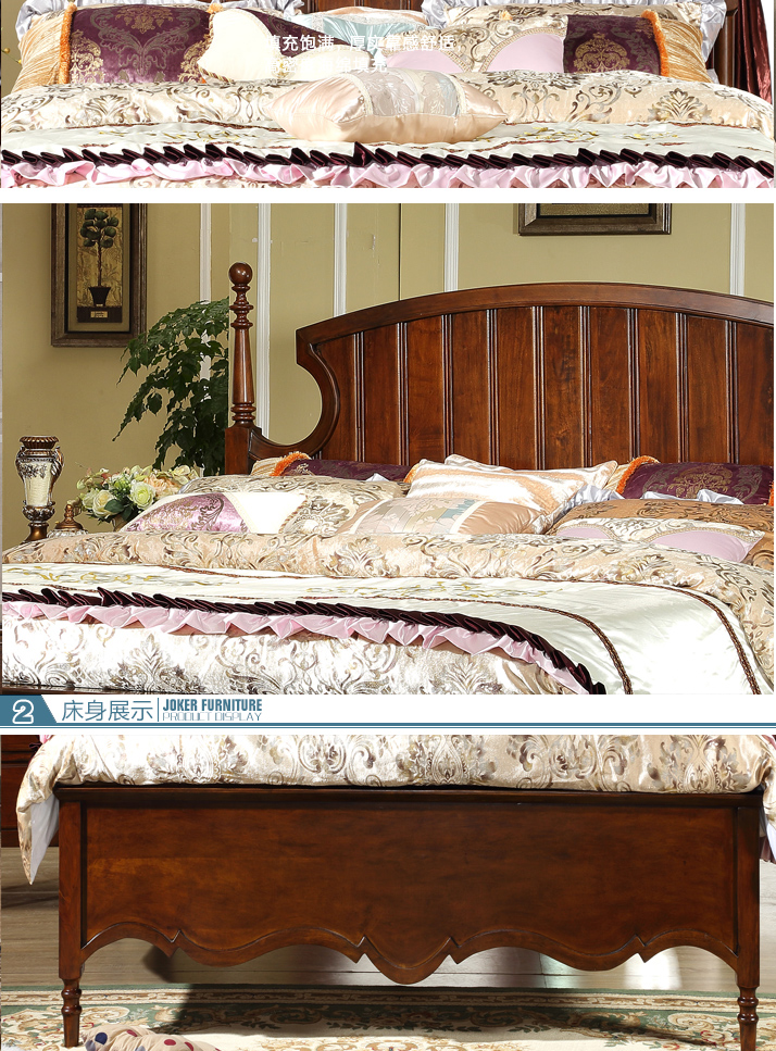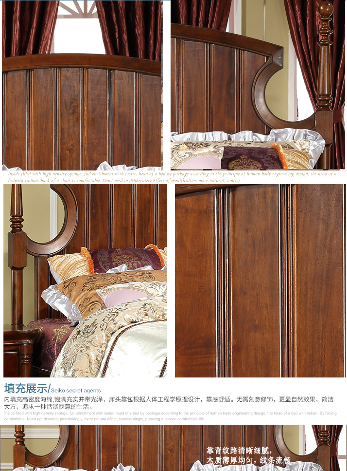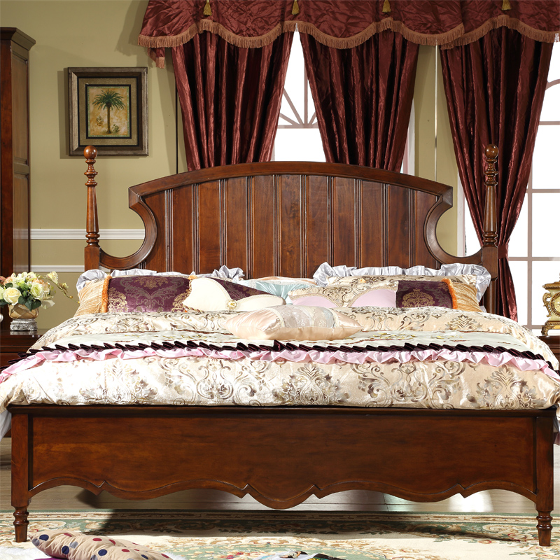 伊力庄园高端全实木床美式床欧式床田园家具婚床1.8米 卧室双人床5312实木床