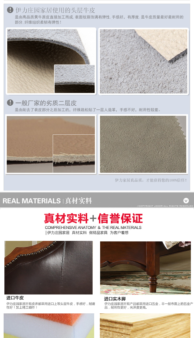 伊力庄园真皮沙发美式田园风格5313B皮艺床