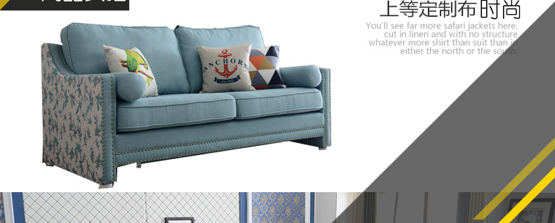 法依兰 美式乡村高档定制布实木框架高密度海绵组合沙发3067