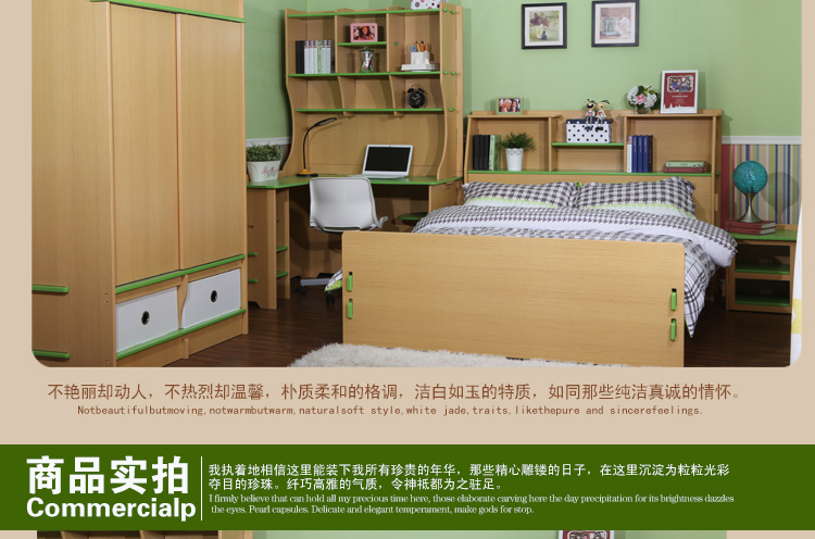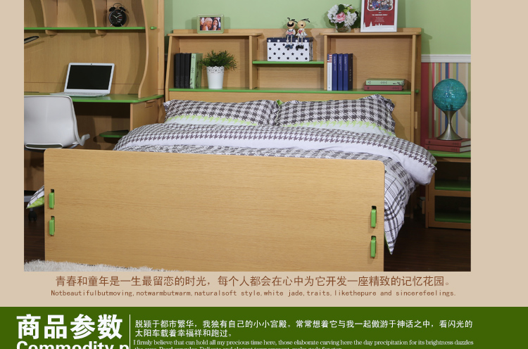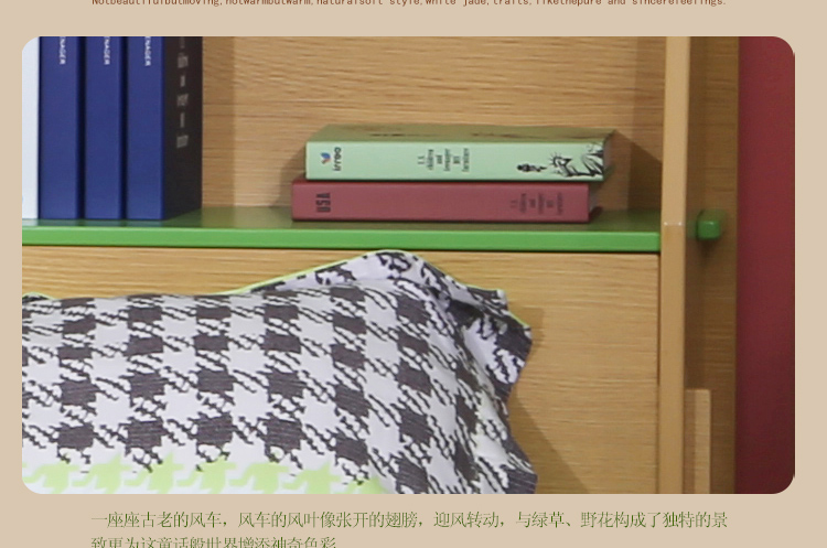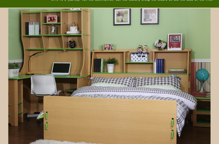 卡其色搭配绿色 沉闷中充满生机 床头带床头架 方便学习
