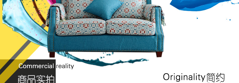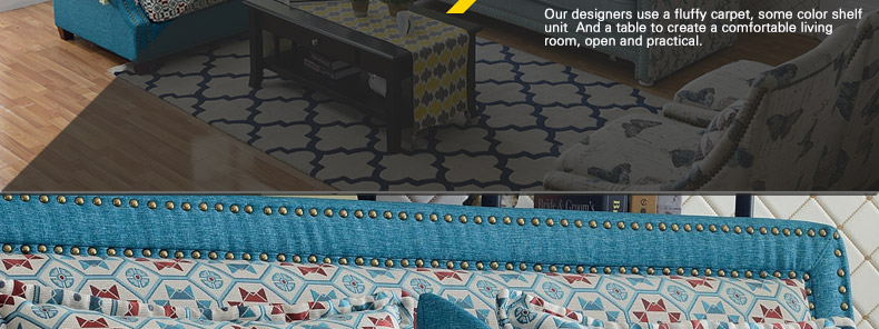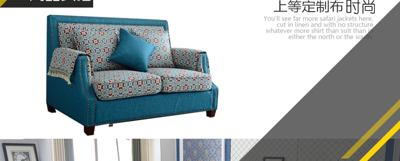 法依兰 美式乡村高档定制布高回弹海绵实木框架组合沙发6012B