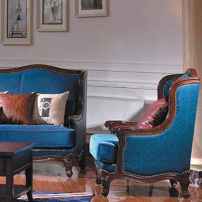 DH 美式风格高档复古进口油蜡木艺皮质沙发组合610