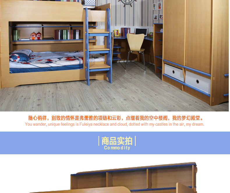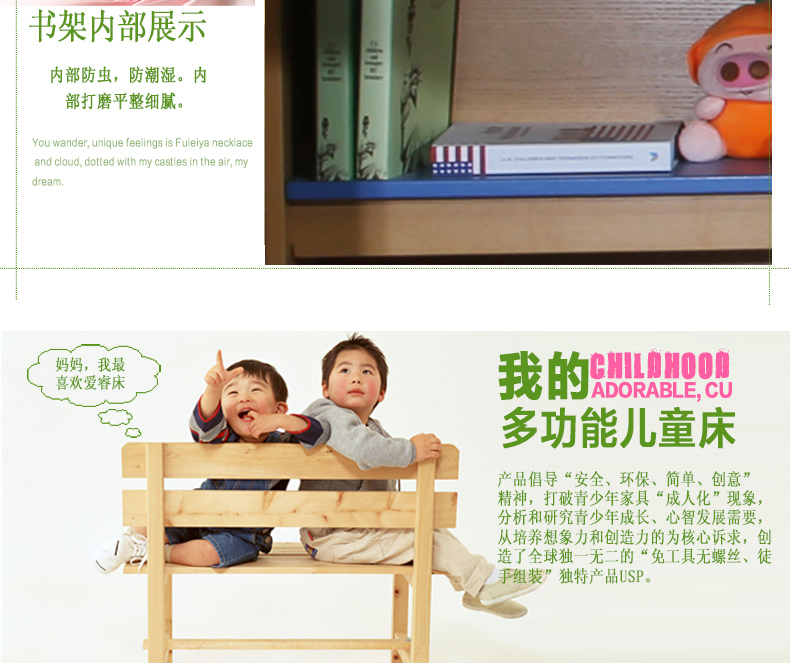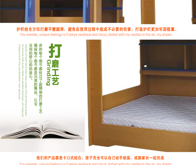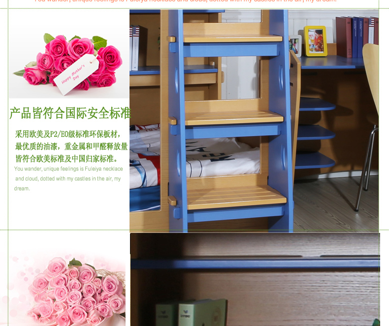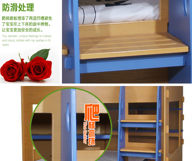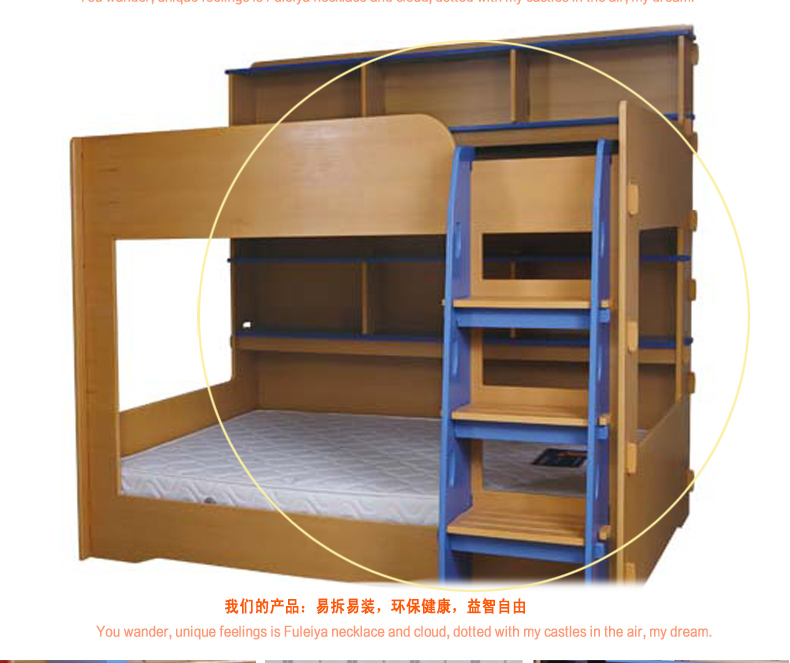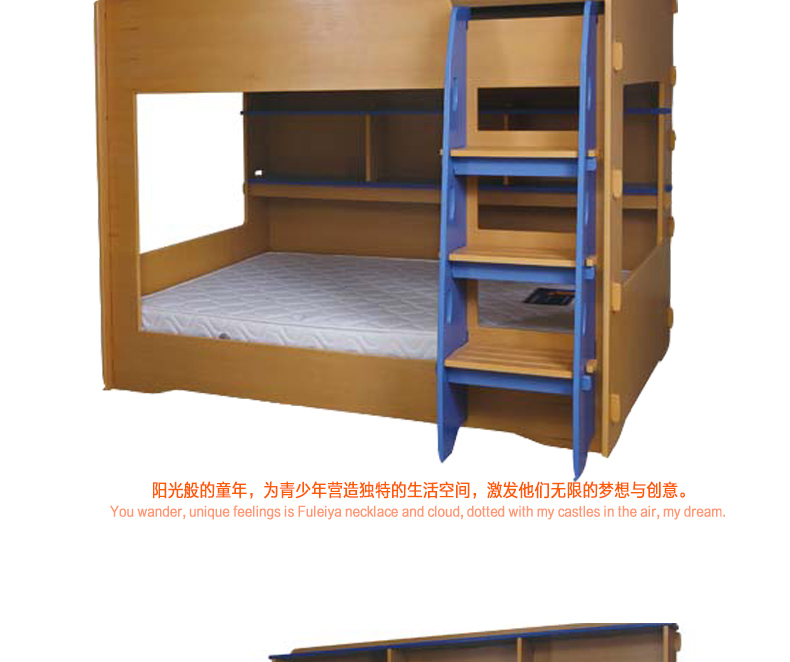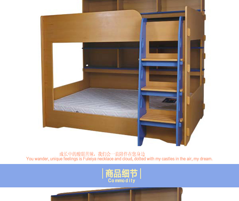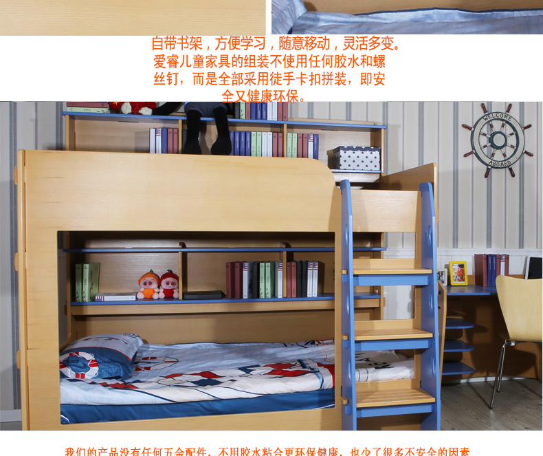 上下床 内带书架 超高护栏 防滑爬梯 安全手环 E0级板材 耐冷耐热