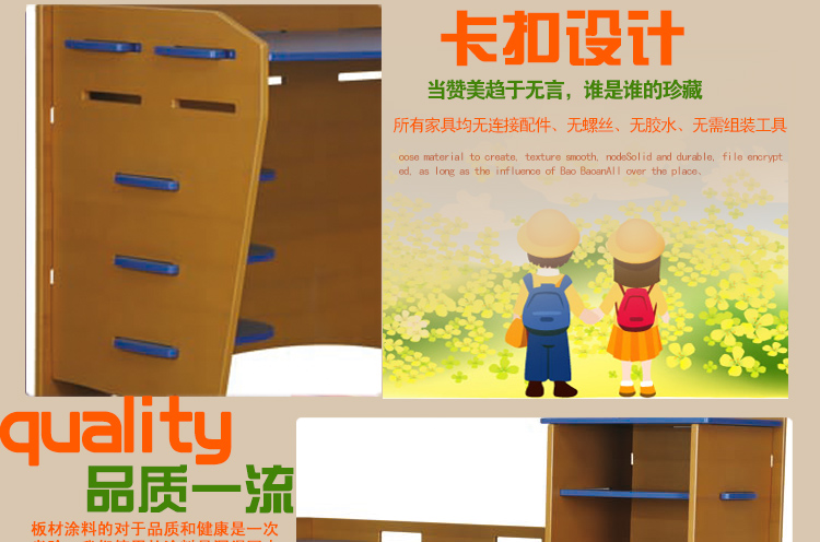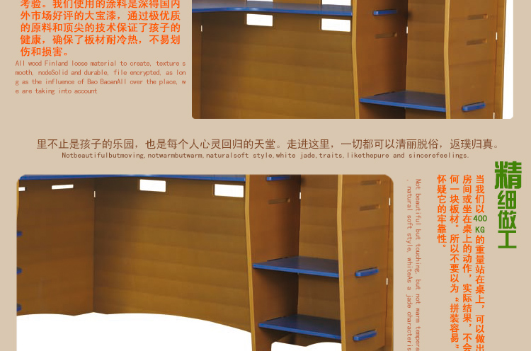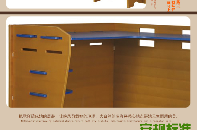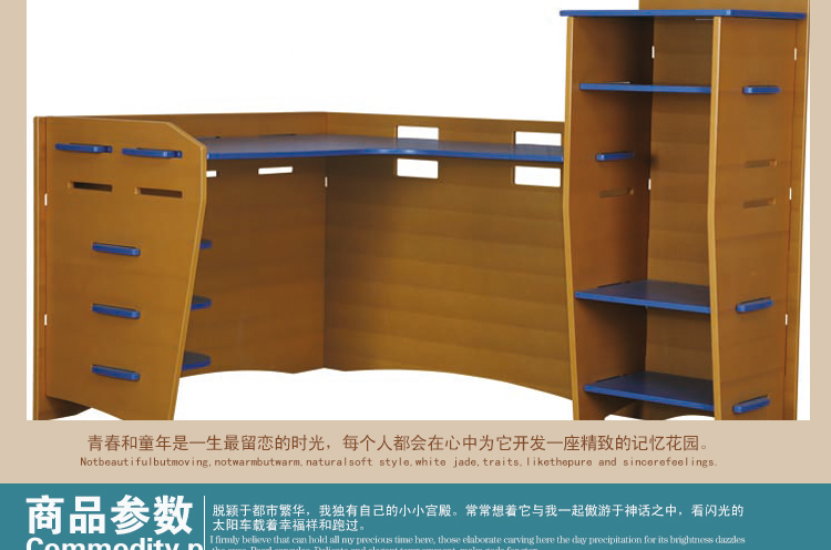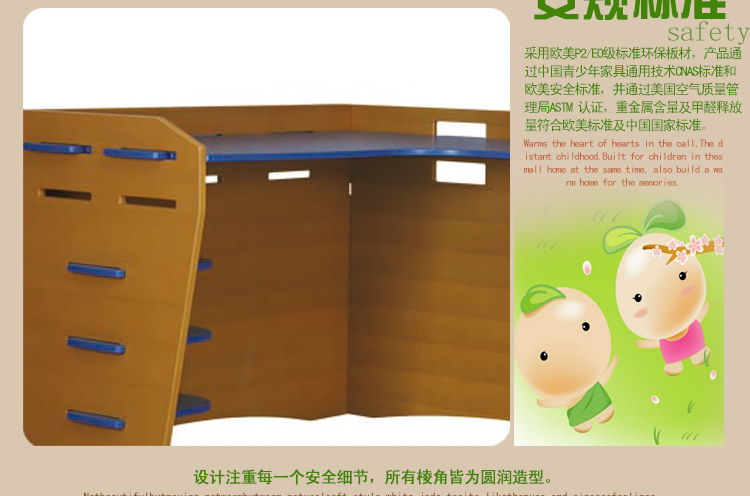 书柜+学习桌一体式设计 节省更多空间 暖色系色彩温馨怡人 精巧的卡扣设计 结实稳固