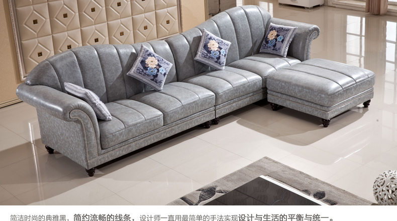 美多邦真皮沙发客厅转角组合现代简约进口头层牛皮沙发8818