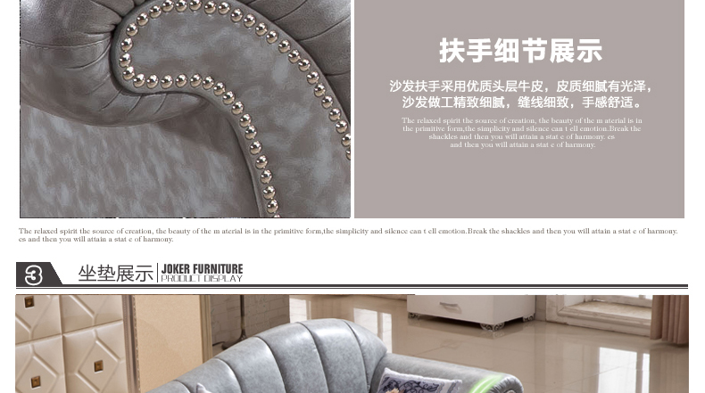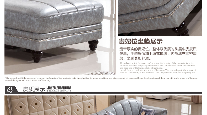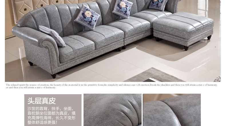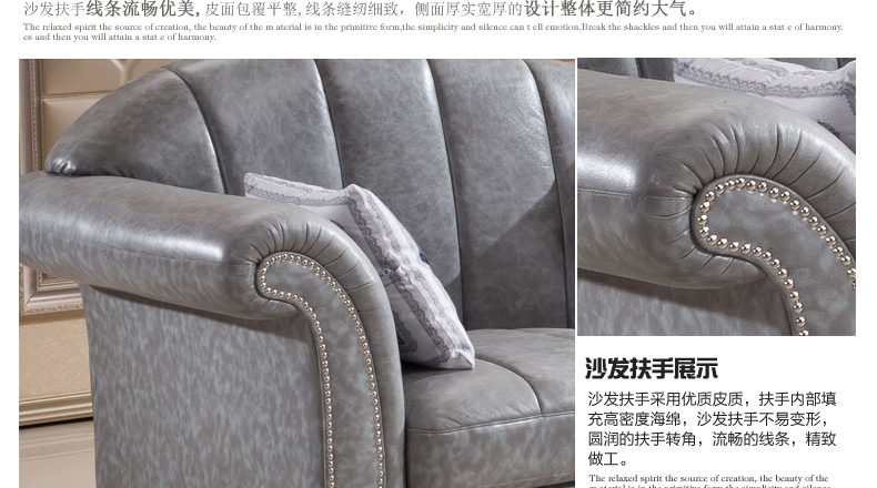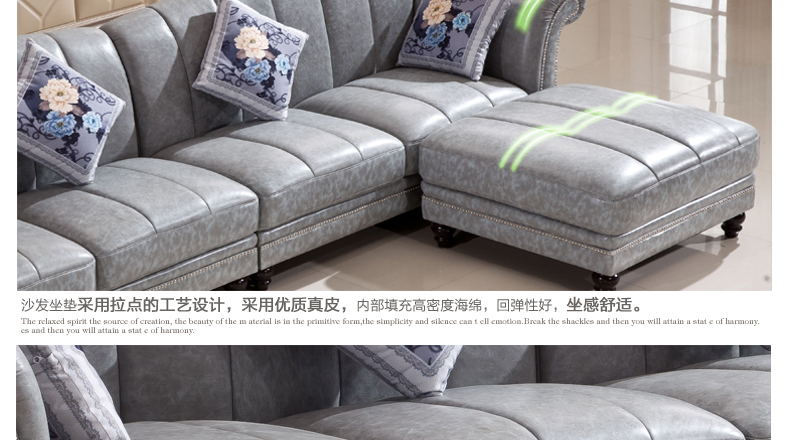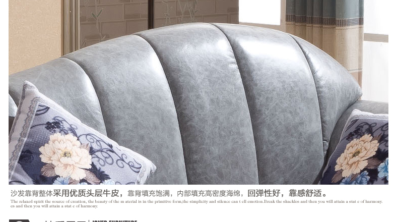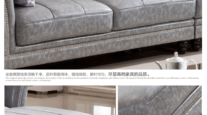 沙发真皮部分采用头层真皮,质感一流,韧性十足;木材采用全实木精心雕刻,让家成为心灵的港湾,店长推荐