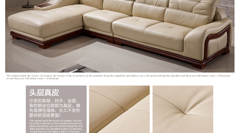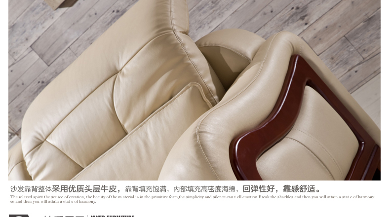 沙发真皮部分采用头层真皮,质感一流,韧性十足;木材采用全实木精心雕刻,让家成为心灵的港湾,店长推荐