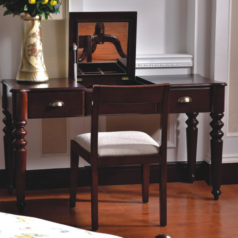 DH 美式乡村翻盖梳妆台欧式多功能化妆桌 实木小户型901妆台