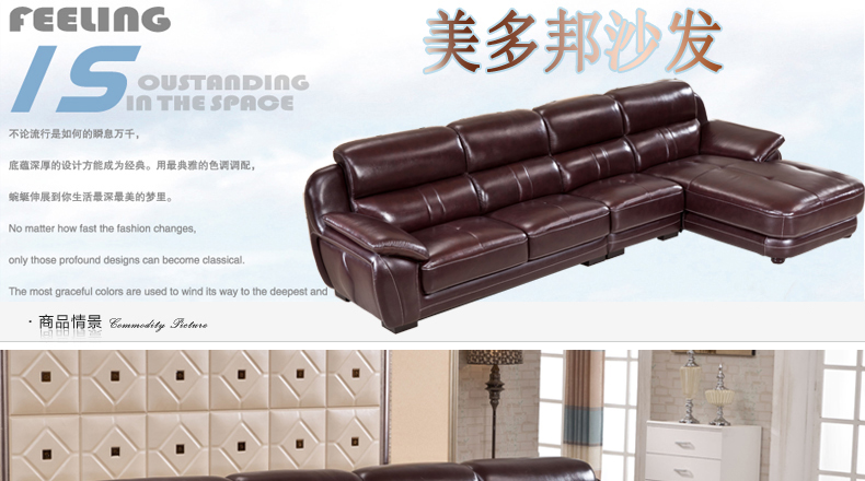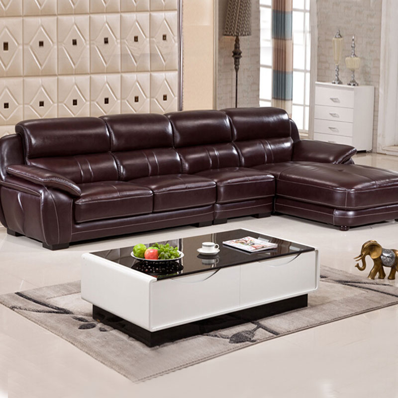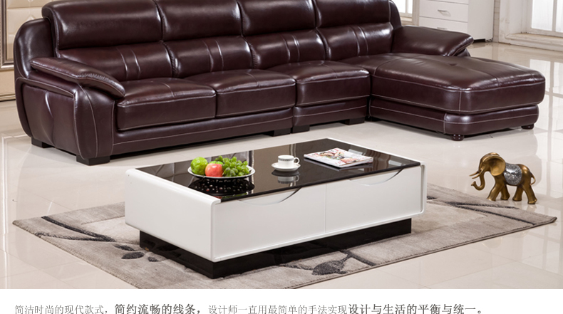美多邦现代真皮沙发L型大小户型奢华高档实木家具 皮艺沙发组合8810