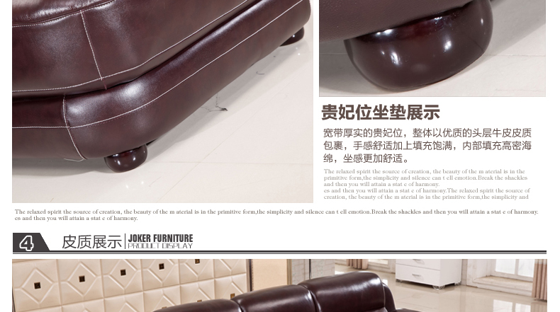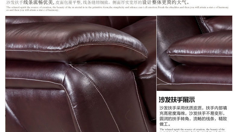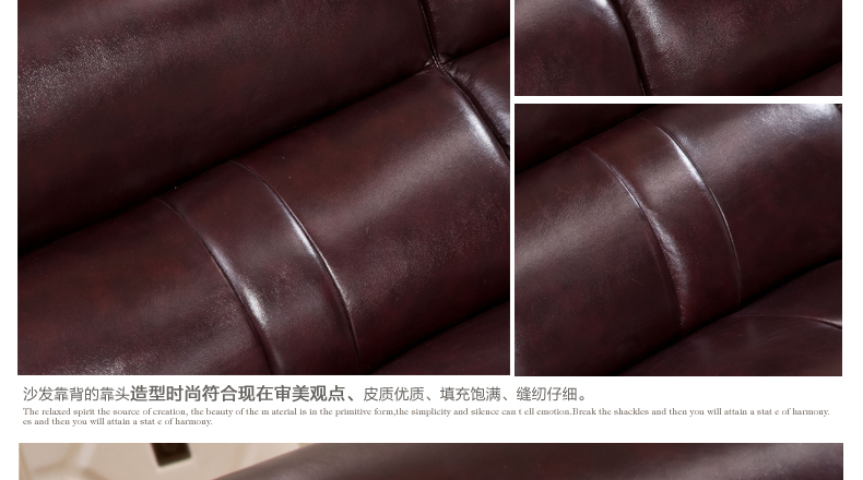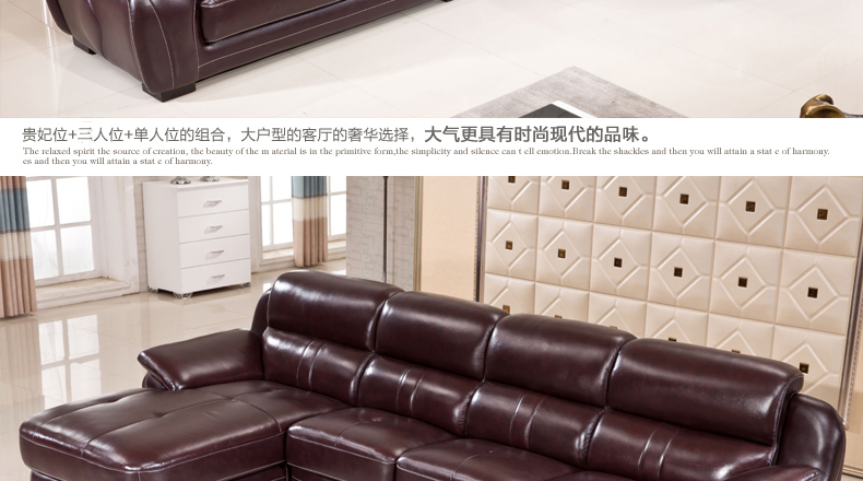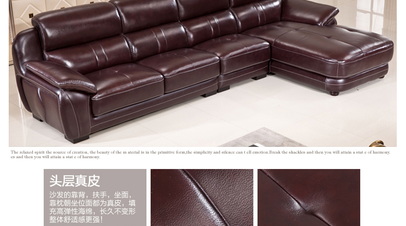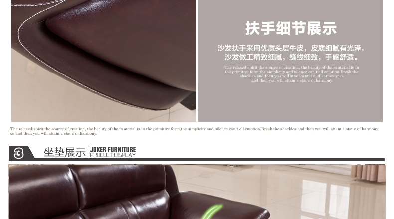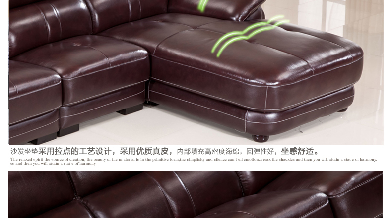 沙发真皮部分采用头层真皮,质感一流,韧性十足;木材采用全实木精心雕刻,让家成为心灵的港湾,店长推荐