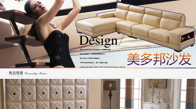 美多邦真皮沙发 现代大小户型奢华高档实木家具 皮艺沙发组合8812