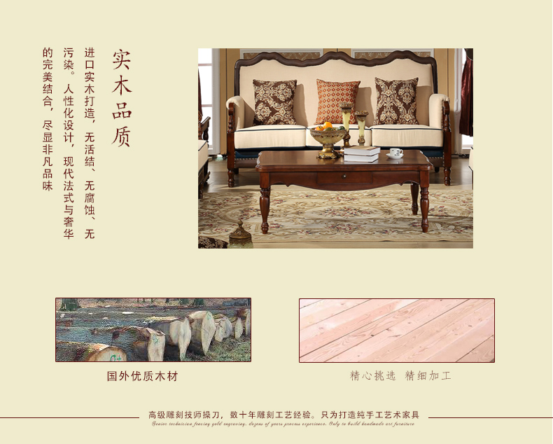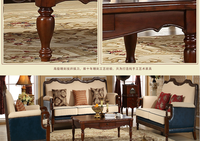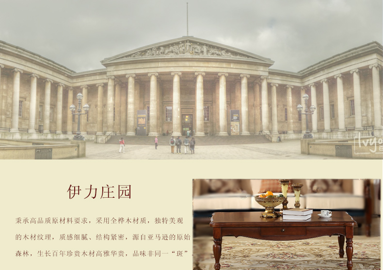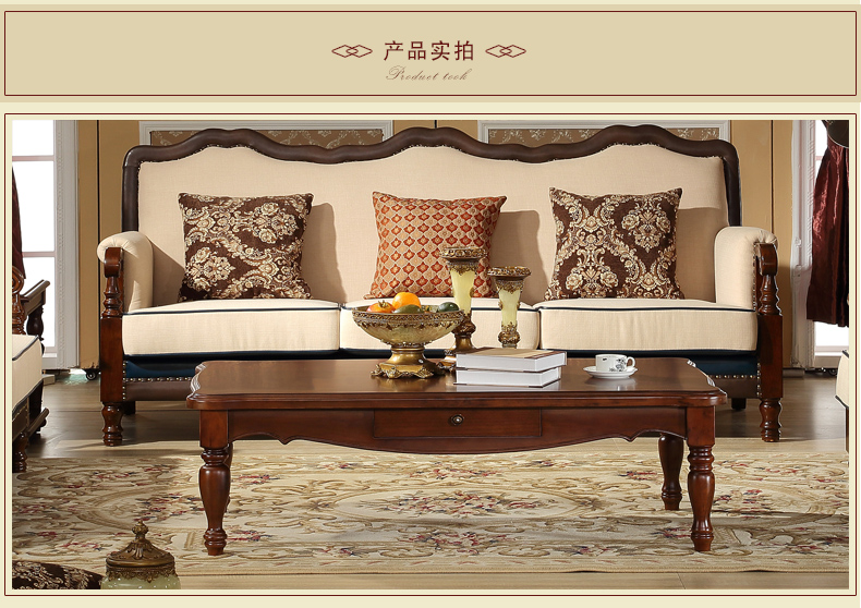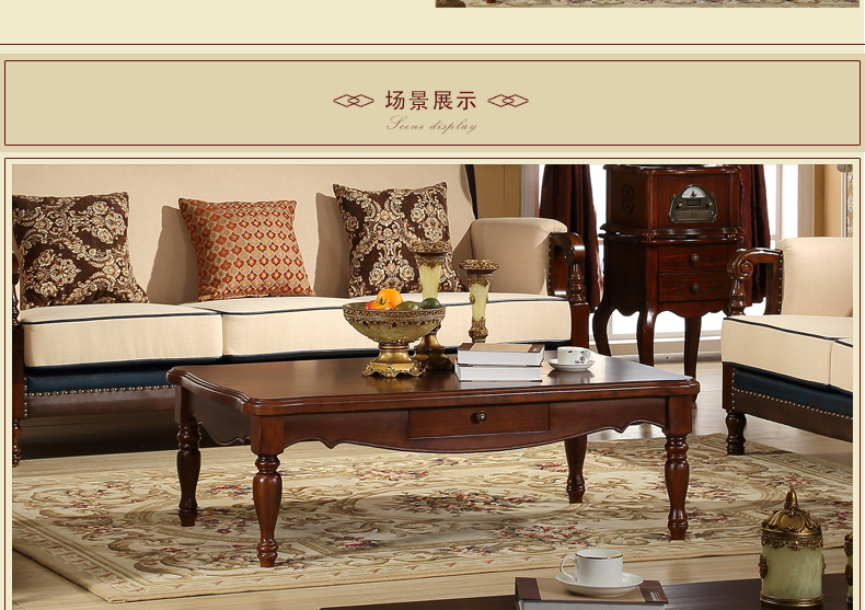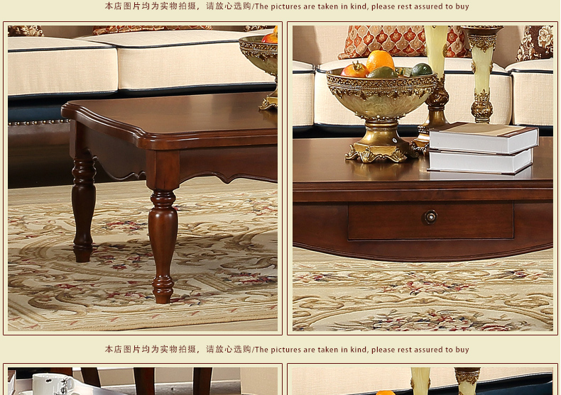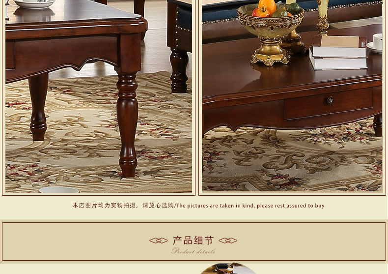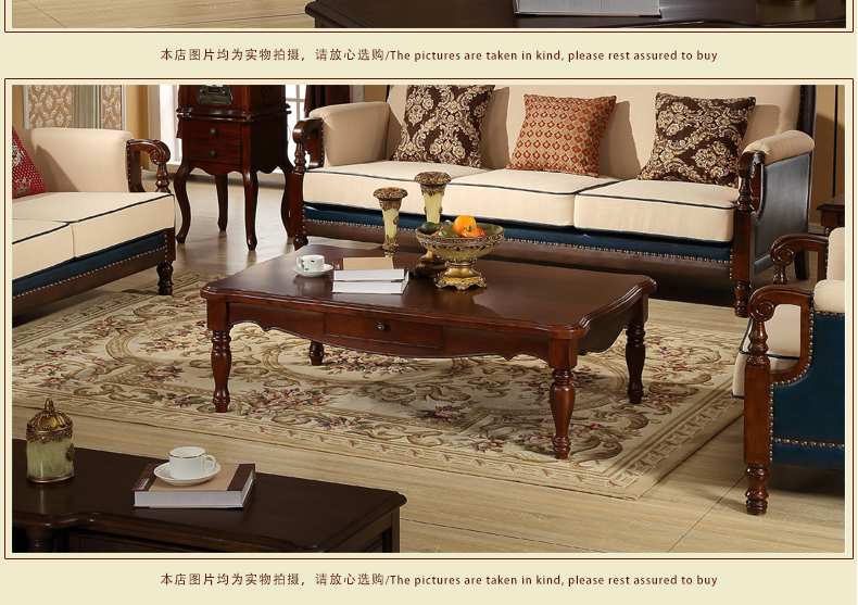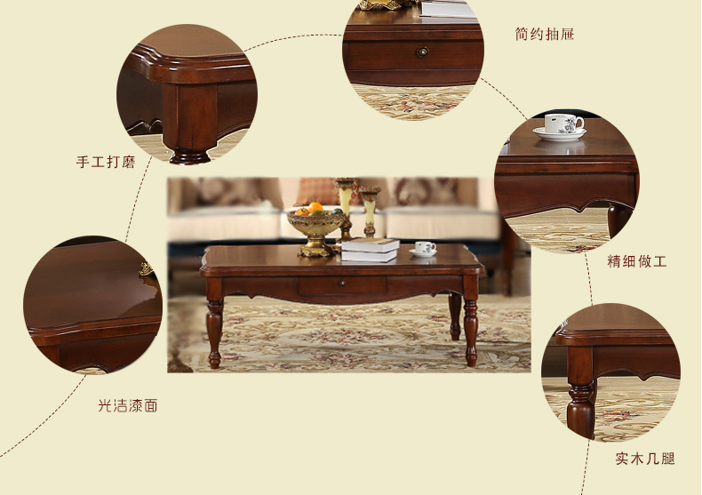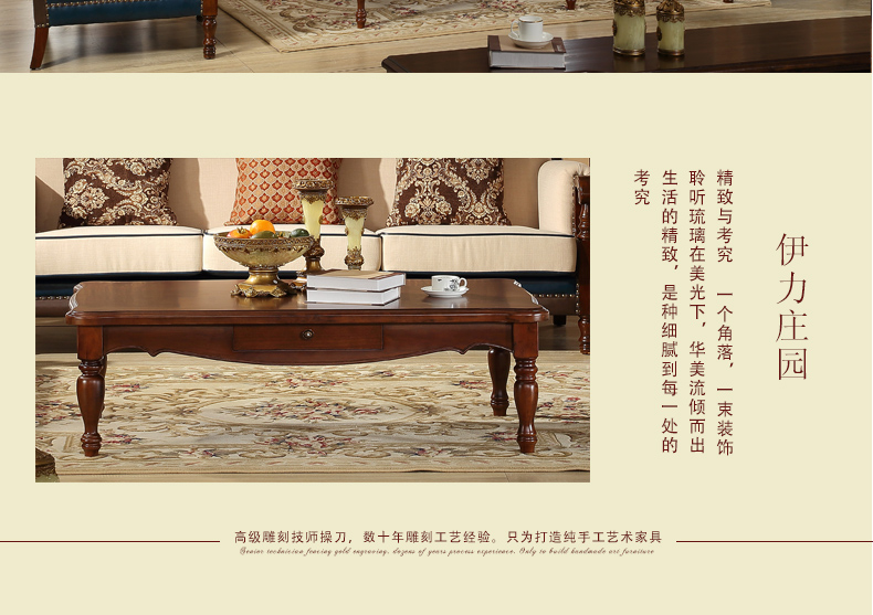 伊力庄园5386单抽长几实木美式乡村风格实木茶几5386