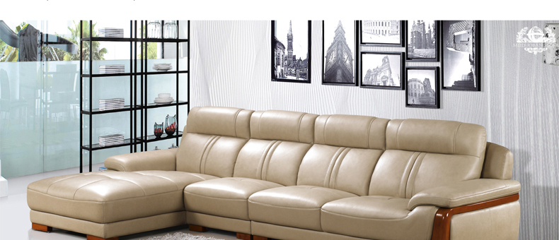美多邦真皮沙发 现代转角客厅大小户型奢华高档实木家具 皮艺沙发组合8611