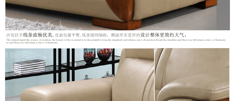 沙发真皮部分采用头层真皮,质感一流,韧性十足;木材采用全实木精心雕刻,让家成为心灵的港湾,店长推荐