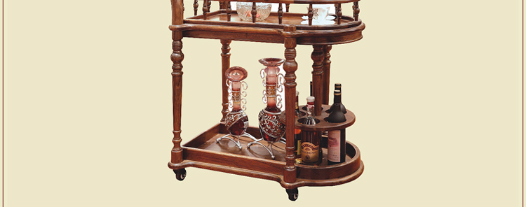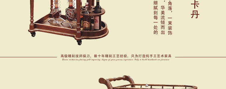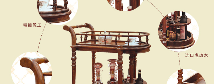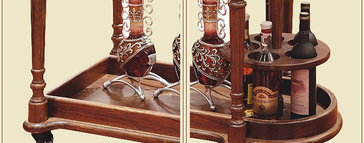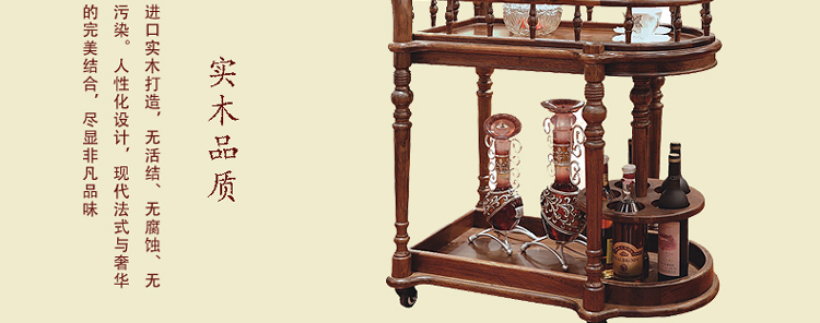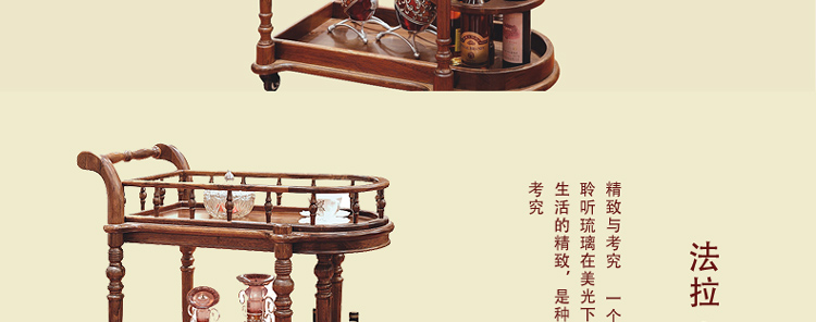 法拉卡丹 实木餐车 欧式多功能酒水推车 餐碟红酒古典置物架A02-34